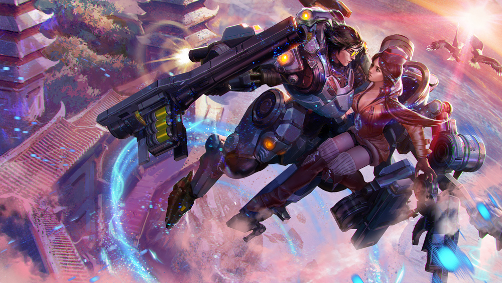 Dengan suara berdesing yang tiba-tiba, mech milik Skye meluncur dari belakangnya dan melayang di udara hanya beberapa inci dari ujung jurang. Sambil menyeimbangkan diri dengan satu kaki dan berpegangan dengan satu tangan, tangan Skye menggapai dan dengan cepat menangkap keramik yang hampir terjatuh. Sesudah itu, dia meluncur lagi dan mendarat di sisi Baron sebelum HUD pria itu sempat menangkap gerakannya. Baron berbalik, gerakannya berat dan lambat jika dibandingkan dengan exosuit Skye yang ramping dan terbuka di bagian depannya. Dia mengenakan visor-nya di saat yang tempat untuk melindunginya dari sebuah peluru yang baru saja ditembakkan ke arahnya. Retakan mulai muncul di nama Skye yang tampil di HUD Baron saat gadis itu mulai melepaskan tembakan demi tembakan yang mengenai baju bajanya. Satu peluru berhasil mengenai panel pengendali exosuit-nya dan membuat alarmnya menyala. HUD-nya erkedip-kedip saat Skye berputar ke belakang Baron dan menembak salah satu paket energinya. Baterai kristal mulai meleleh dan cairan biru mengalir ke bagian kaki baju besinya.